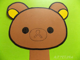 - Lalu gambar karakter Rilakkuma-nya di kertas buffalo warna coklat, terserah mau gambar sendiri atau dijiplak pakai kertas karbon. Tegaskan garis-garisnya dengan menggunakan spidol hitam, kecuali bagian hidung dan mulut. Dan jangan lupa sisakan kertas di bawah kepala untuk menempelkan ke kertas yang akan berisi jadwal pelajaran.